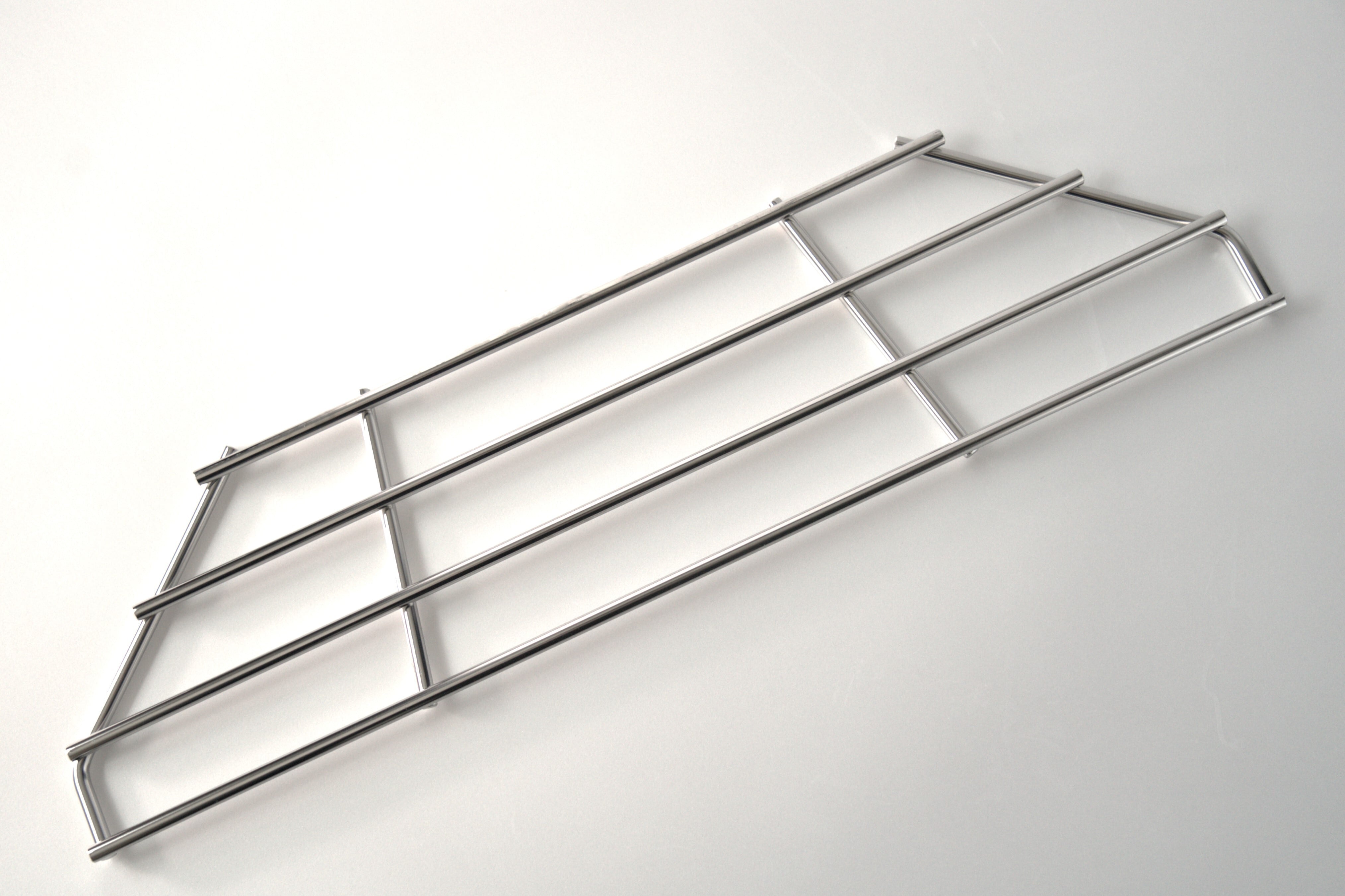 機能的には両側のくの字フレームが開口部外径に沿って外側に落ち込む構造が横ズレを防ぎ、ハの字に取り付けた補強ステーは不用意に奥側に落ちないよう、ストッパーの役割りを果たします。